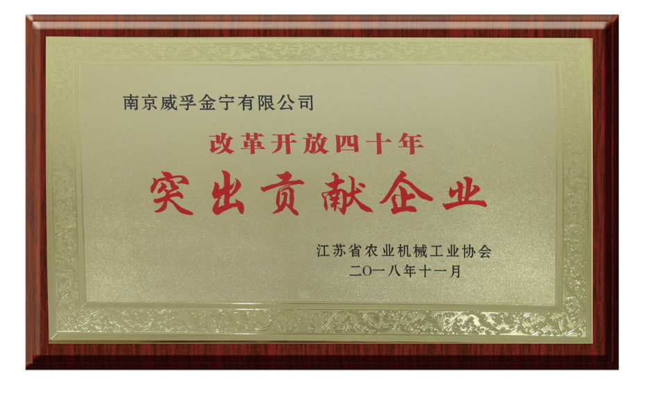 從紀(jì)念江蘇農(nóng)機(jī)工業(yè)改革開放四十周年暨行業(yè)表彰會議上獲悉。南京威孚金寧有限公司榮獲“改革開放四十年江蘇農(nóng)機(jī)行業(yè)突出貢獻(xiàn)企業(yè)”。同時,電控VE泵產(chǎn)品榮獲“改革開放四十年江蘇農(nóng)機(jī)行業(yè)杰出產(chǎn)品”稱號。